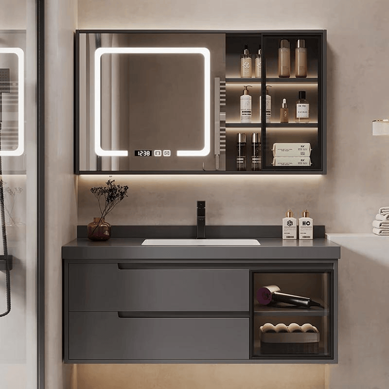 台面采用优质岩板,无缝设计,既美观又实用,不易藏污纳垢,轻松打理。智能镜柜一键开启,带有除雾功能,高清镜面自然柔光,精准显色,让您每一次使用都能享受到清晰的视野。另外,LED柔光灯的加入,让浴室氛围更加温馨。